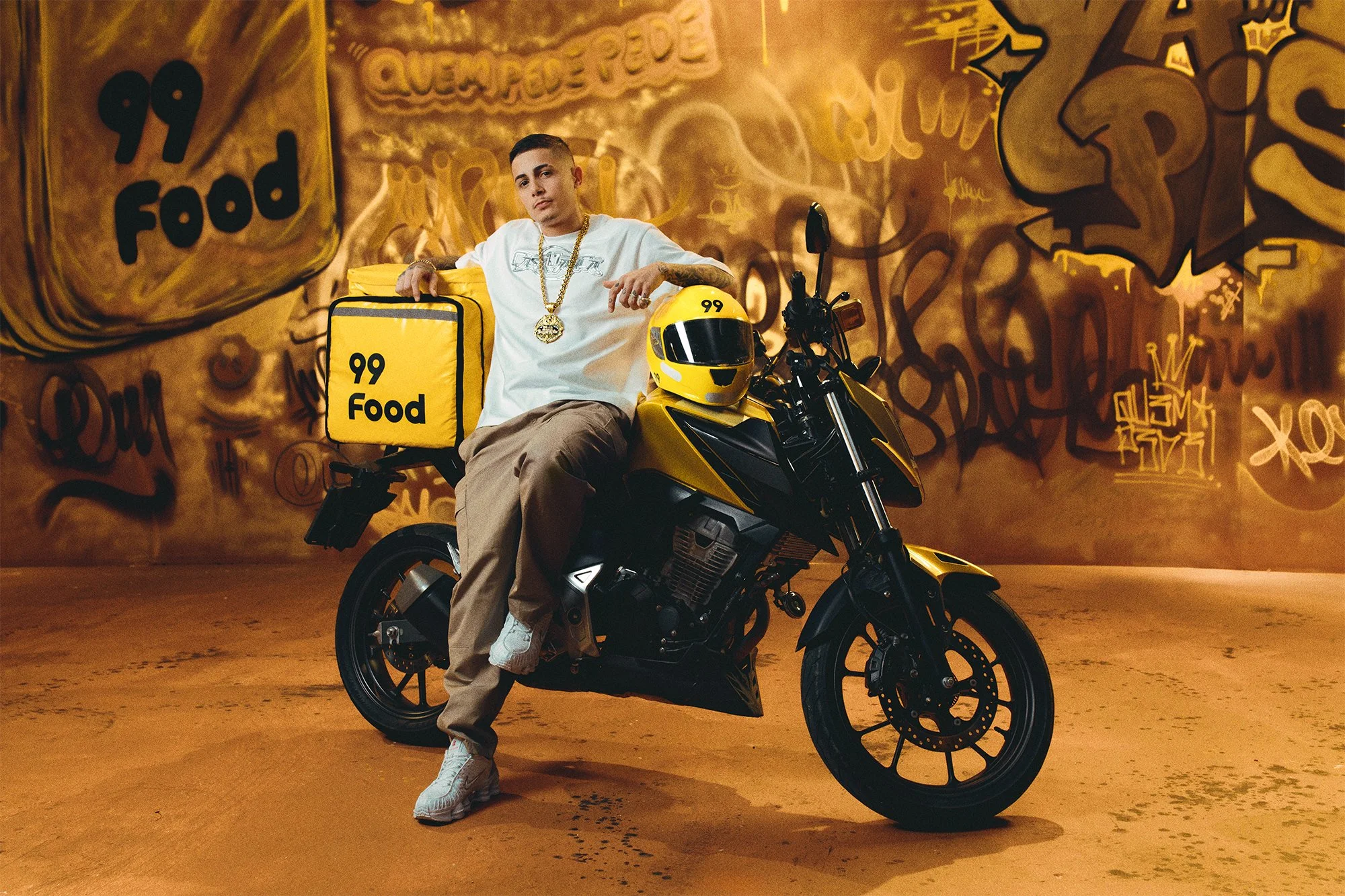 Em um mercado onde todas as plataformas falavam a mesma língua para disputar entregadores, a 99Food decidiu mudar o tom. Convidamos MC Hariel para trazer sua estética, linguagem e atitude para o centro da campanha, criando uma conexão genuína com quem vive a rua todos os dias. A bag de entrega, símbolo diário do corre, deixou de ser apenas ferramenta de trabalho e se transformou em passaporte para prêmios reais. Quanto mais engajado o entregador estivesse na plataforma, maiores eram suas chances de ganhar. A ação posicionou a 99Food ao lado de quem faz o delivery acontecer.